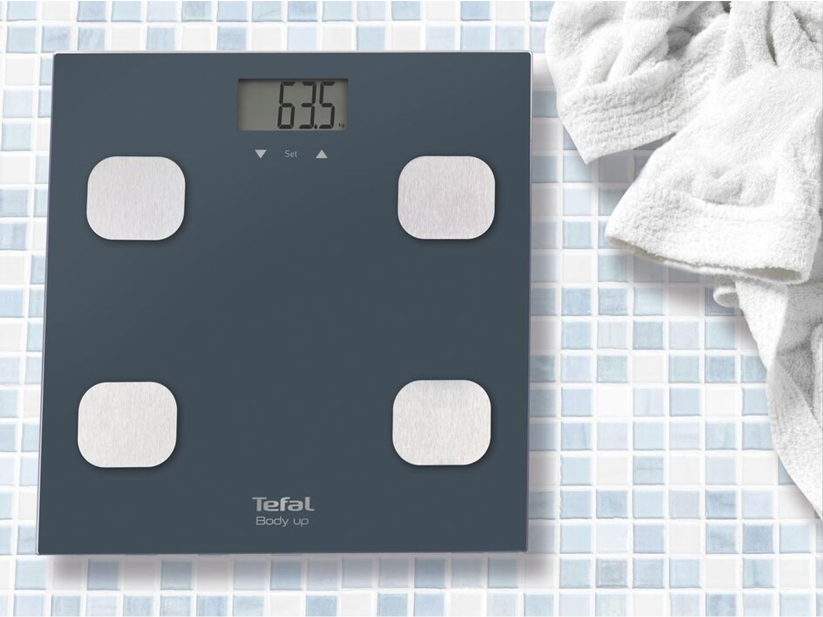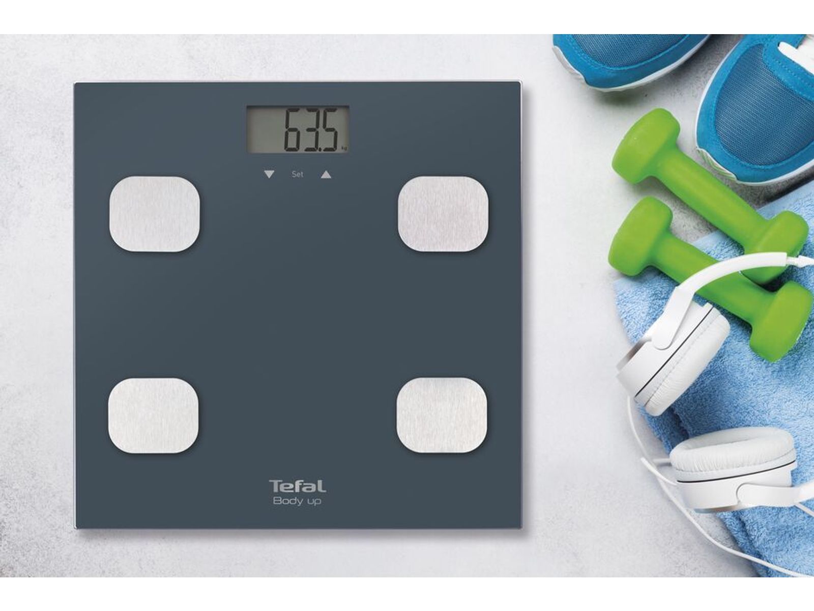 Volg uw lichaamssamenstelling eenvoudig op met de Tefal Body Up weegschaal met vetmeting. Het is zoveel meer dan alleen het bijhouden van uw gewicht, houd uw vetmassa en BMI in de gaten met een handig en betrouwbaar weeginstrument dat zeer eenvoudig is in gebruik: een groot en duidelijk lcd-scherm, geheugen voor maximaal 8 profielen met automatische gebruikersherkenning en een strak glazen weegplatform met een moderne uitstraling. Meet de evolutie van uw gewicht en BMI zodat u perfect kunt volgen hoe uw figuur en uw gezondheid evolueren