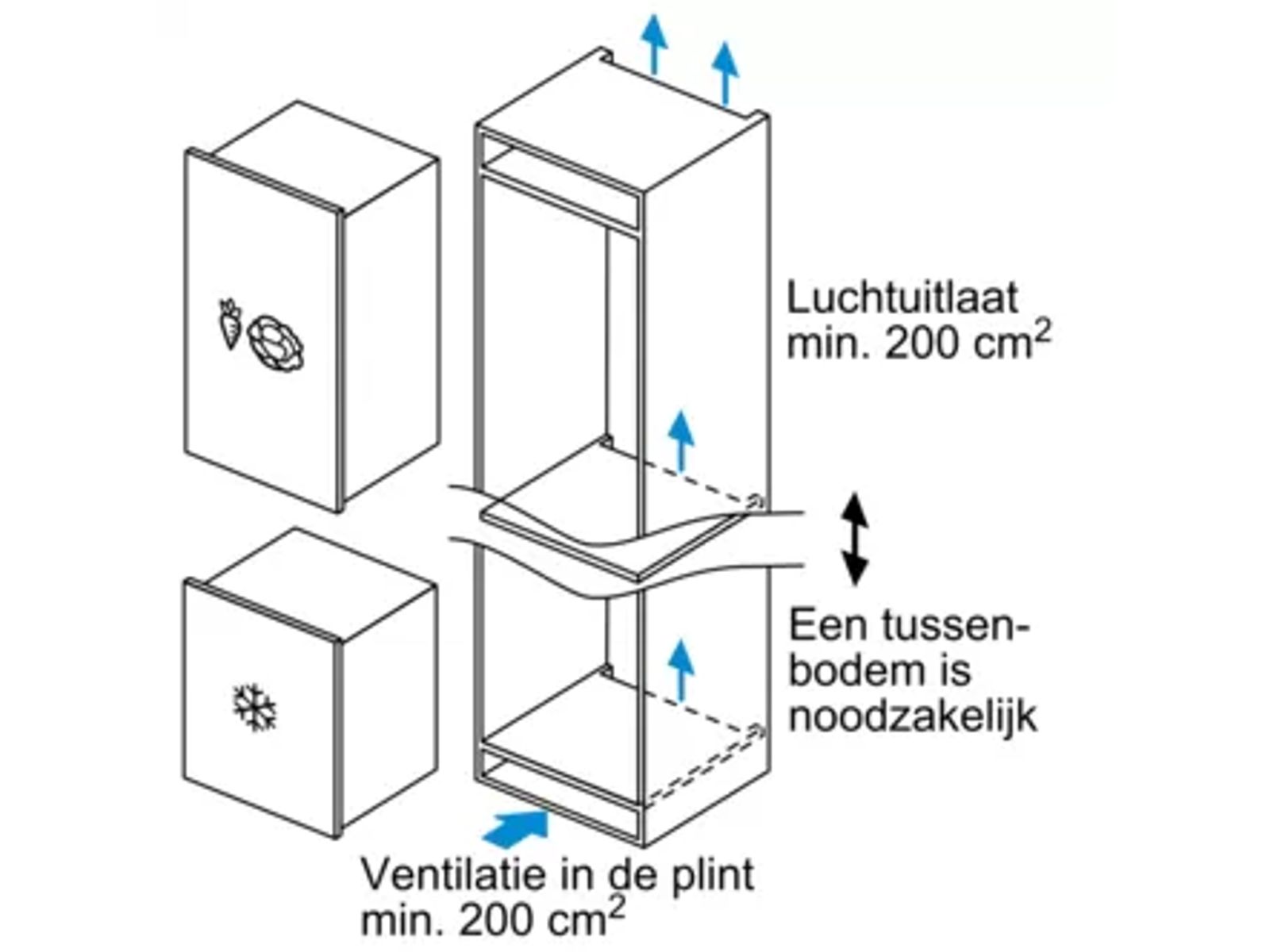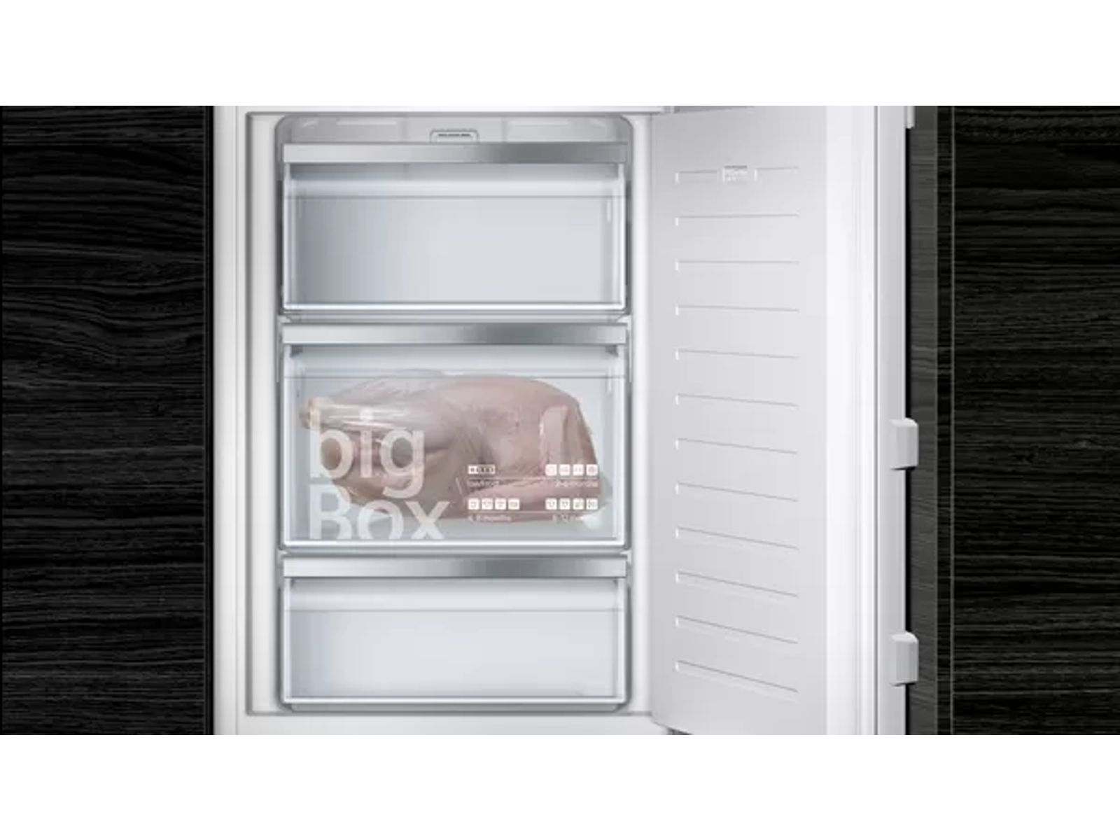 Inbouwvriezer met 3 praktische transparante vrieslades en superVriezen om etenswaren sneller in te vriezen.