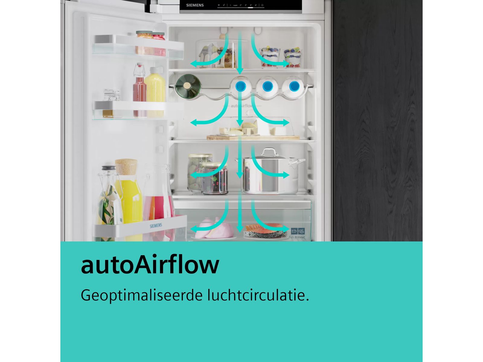 Het AutoAirflow-systeem verdeelt de lucht gelijkmatig doorheen de hele koelkast, zodat alle niveaus een constante temperatuur behouden. Je producten worden sneller koel en blijven lekker vers.