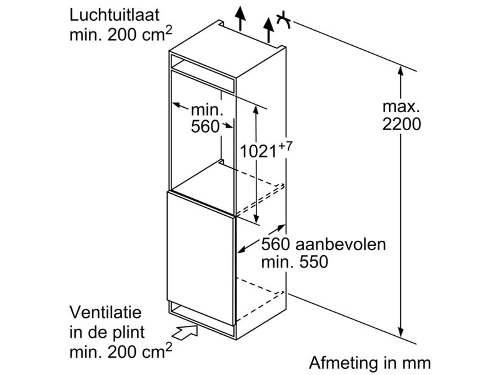 Inbouwkoelkast met heldere ledverlichting, hyperFresh en autoAirflow voor optimale bewaaromstandigheden van voedsel.