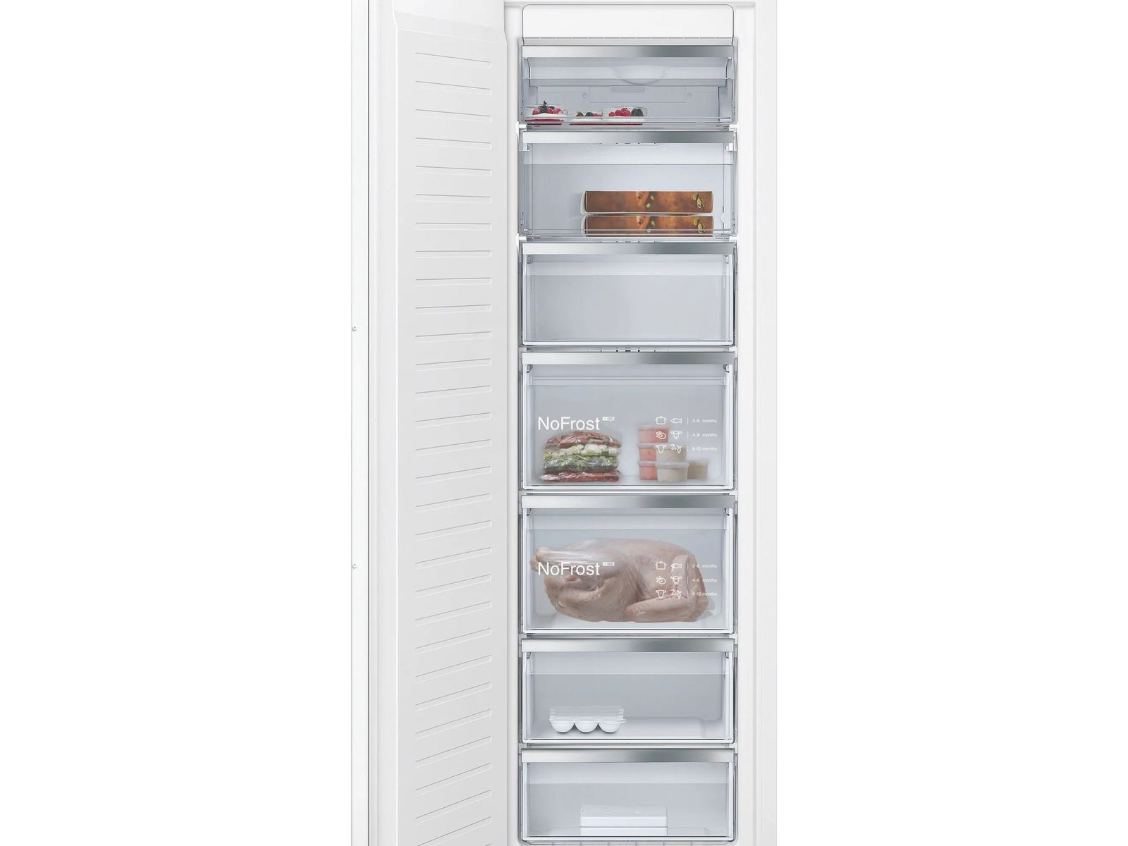 Je hoeft je vriezer niet meer te ontdooien om je bevroren eten goed te bewaren en het apparaat energiezuinig te houden.De noFrost-technologie verwijdert vocht en houdt de lucht droog. Hierdoor kan zich geen ijs vormen op de wanden van je vriezer en ingevroren etenswaren. Dat bespaart jou de moeite van het ontdooien. Bovendien bespaart het energie, want een ijsvrije vriezer werkt efficiënter.