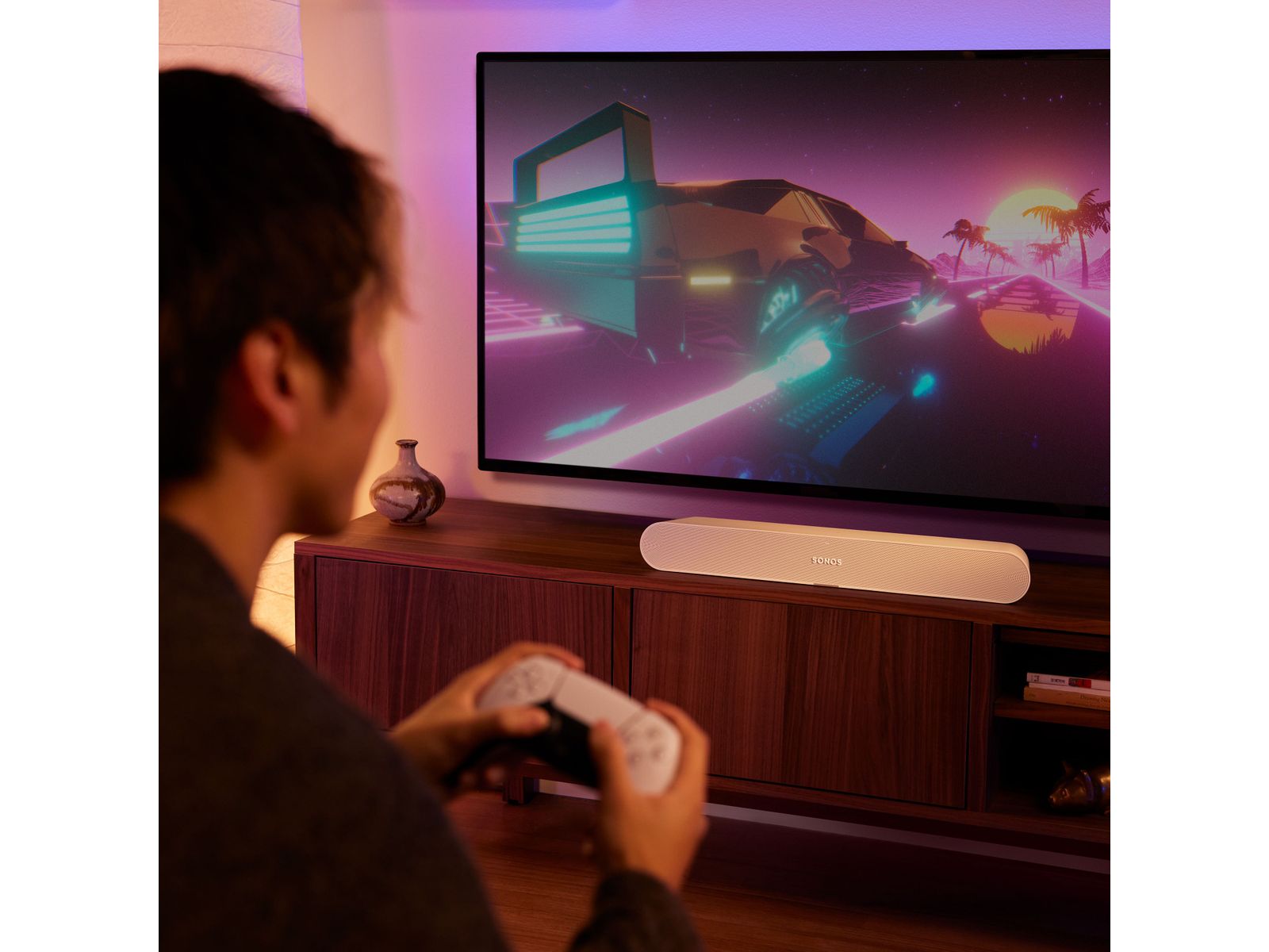 Sluit Ray aan op vrijwel elke tv met optische uitgang, en gebruik je huidige afstandsbediening om het geluid te regelen. Maak verbinding met je pc voor een next-level gaminginstallatie. Tv of pc moeten een optische uitgang hebben.
