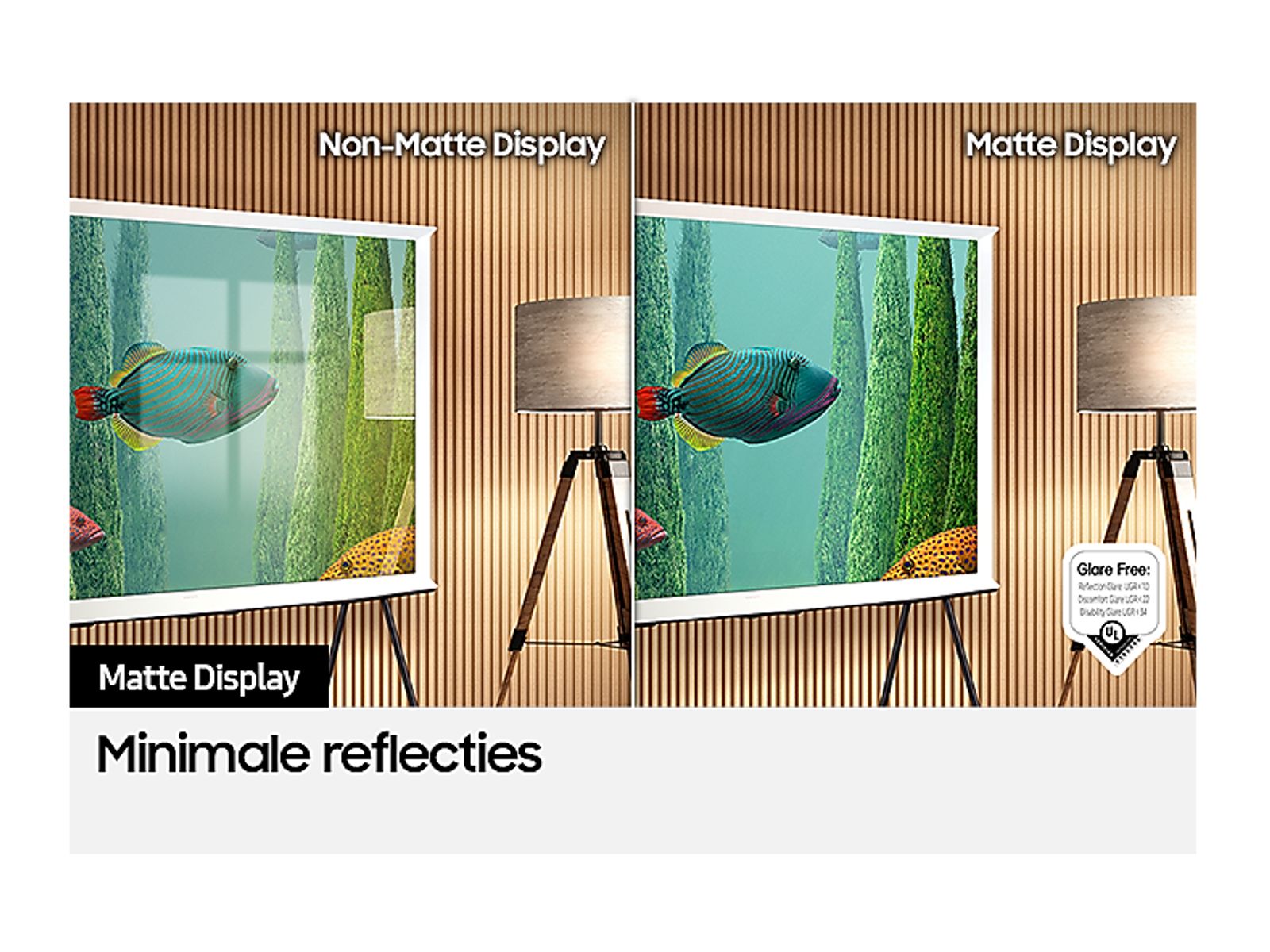 Heb je ook zo genoeg van die vervelende schittering op je TV? Het revolutionaire Matte Display van The Serif absorbeert weerkaatsingen, zodat je zelfs bij fel zonlicht helder beeld hebt.