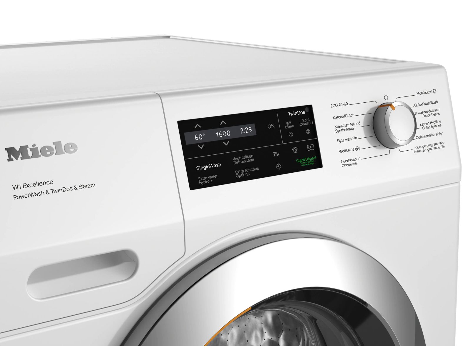 Wasmachine ; Lotuswit ; Excellence Chrome Edition ; A-20% ; 9kg ; 9kg ; 1600tpm ; Comfort sensor ; PowerWash & TwinDos ; Vlekkenoptie ; Capdosing ; SteamCare ; Schuin paneel ; 68dB ; Trommelverlichting ;