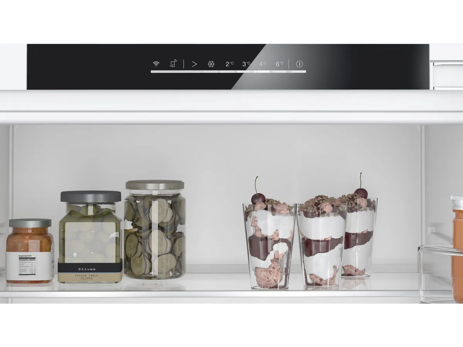 De Intelligent Inverter Technology bestaat uit de intelligente interactie van de temperatuursensoren, het elektronisch systeem en de compressor. De sensoren controleren continu de temperatuur zowel binnenin de inbouwbare koelkast als erbuiten. De veranderingen in temperatuur worden vervolgens onmiddellijk doorgegeven aan het elektronisch systeem zodat de compressor zijn kracht kan aanpassen aan de situatie.