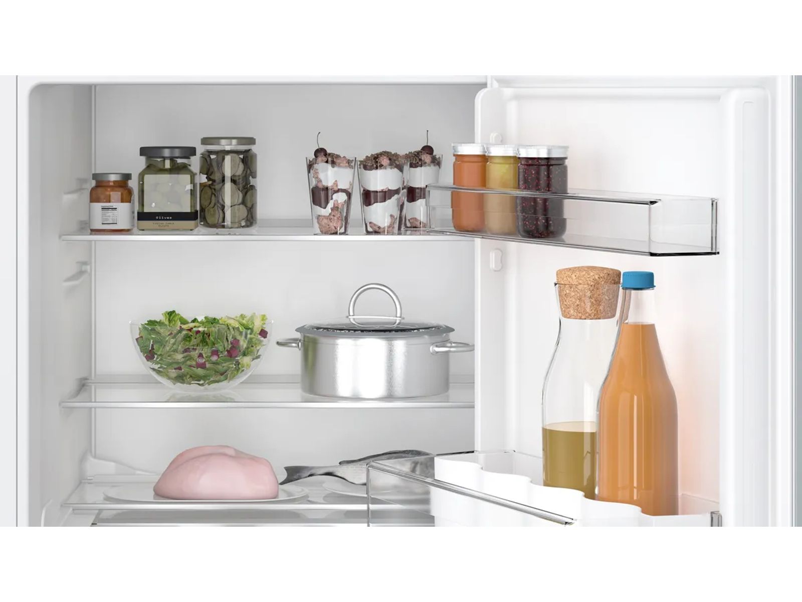 Hou je van sausjes, maar niet van rommel in je koelkast? Onze onderbouwkoelkasten bieden tal van mogelijkheden voor flexibele opbergruimtes in de deur. Een extra diep compartiment onderaan creëert ruimte voor twee rijen hoge flessen, zoals frisdranken en saladedressings. De bovenste compartimenten zijn dan weer perfect voor kleine potjes en flesjes. Zo benut je de ruimte van je koelkast optimaal.
