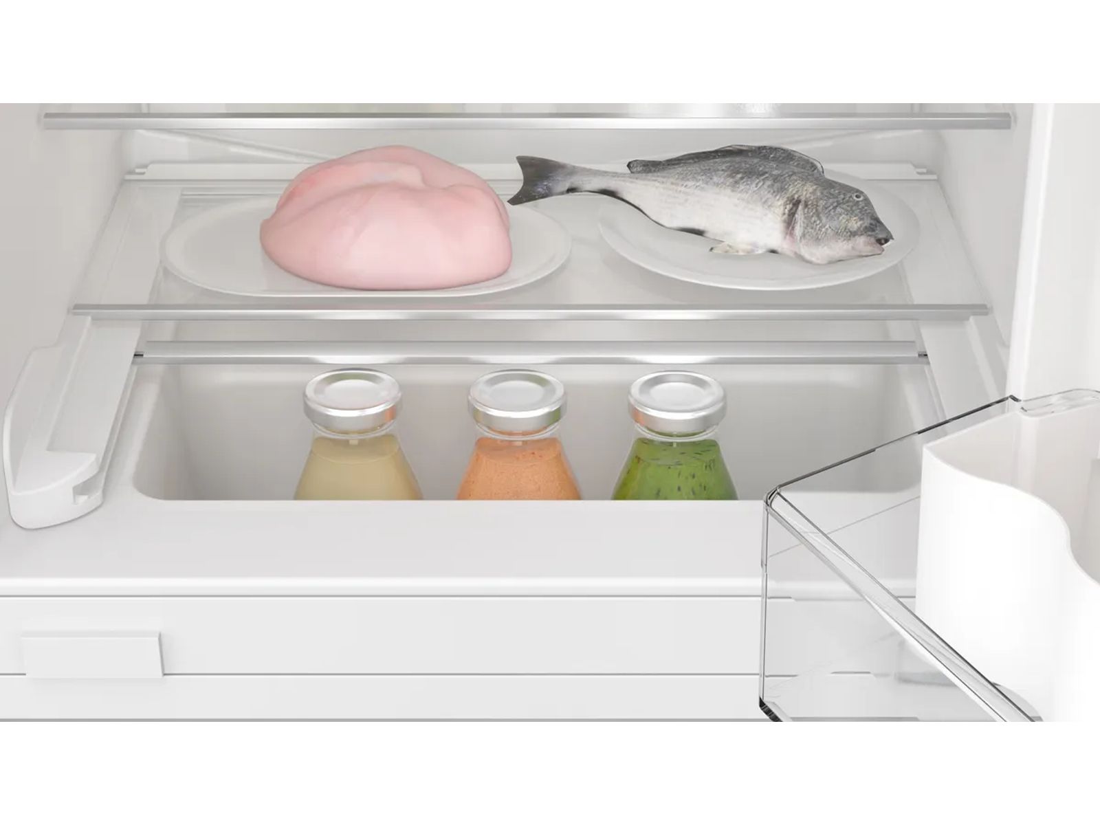 Alle ruimte moet optimaal benut worden in een onderbouwkoelkast. Bosch geeft je wat extra ruimte met het overdekte koelvak onderaan. De glazen afdekplaat is makkelijk open en dicht te schuiven en geeft je een duidelijk zicht op wat erin zit. De place to be om bijvoorbeeld dranken koud te bewaren.