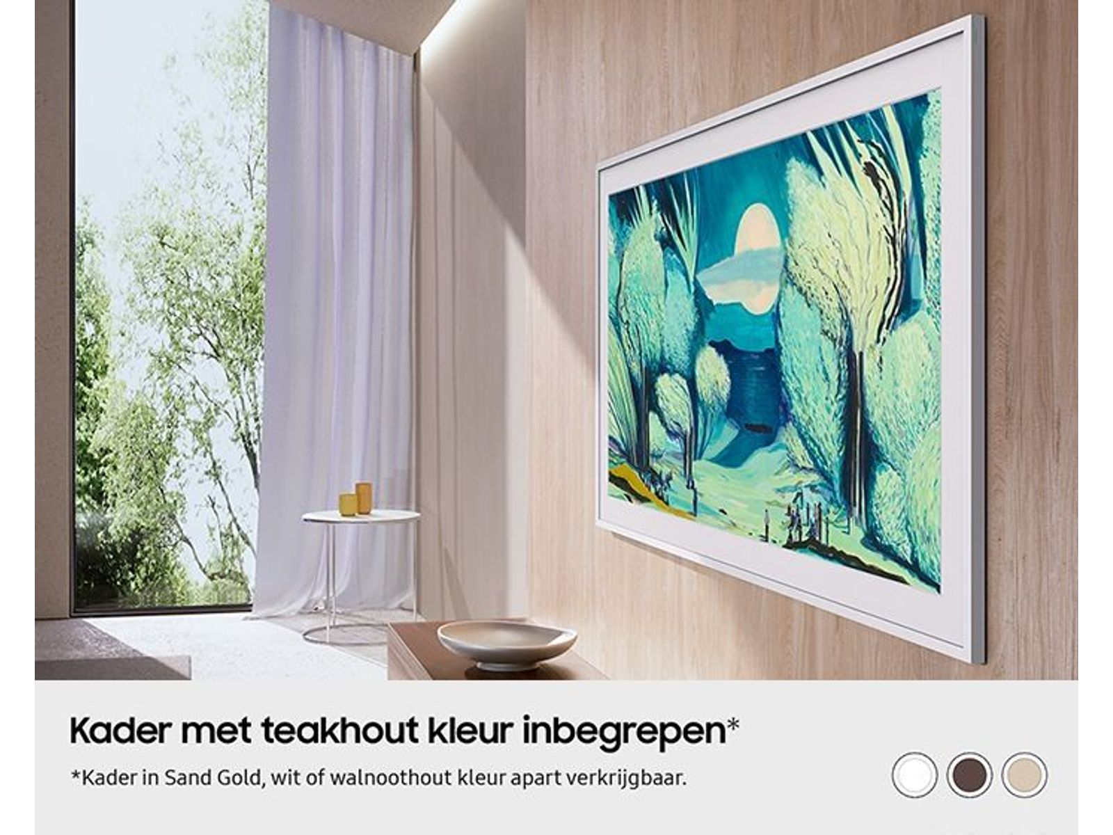The Frame Pro is heel plat en kan dus strak op de muur worden gemonteerd. Het lijkt wel een schilderij!