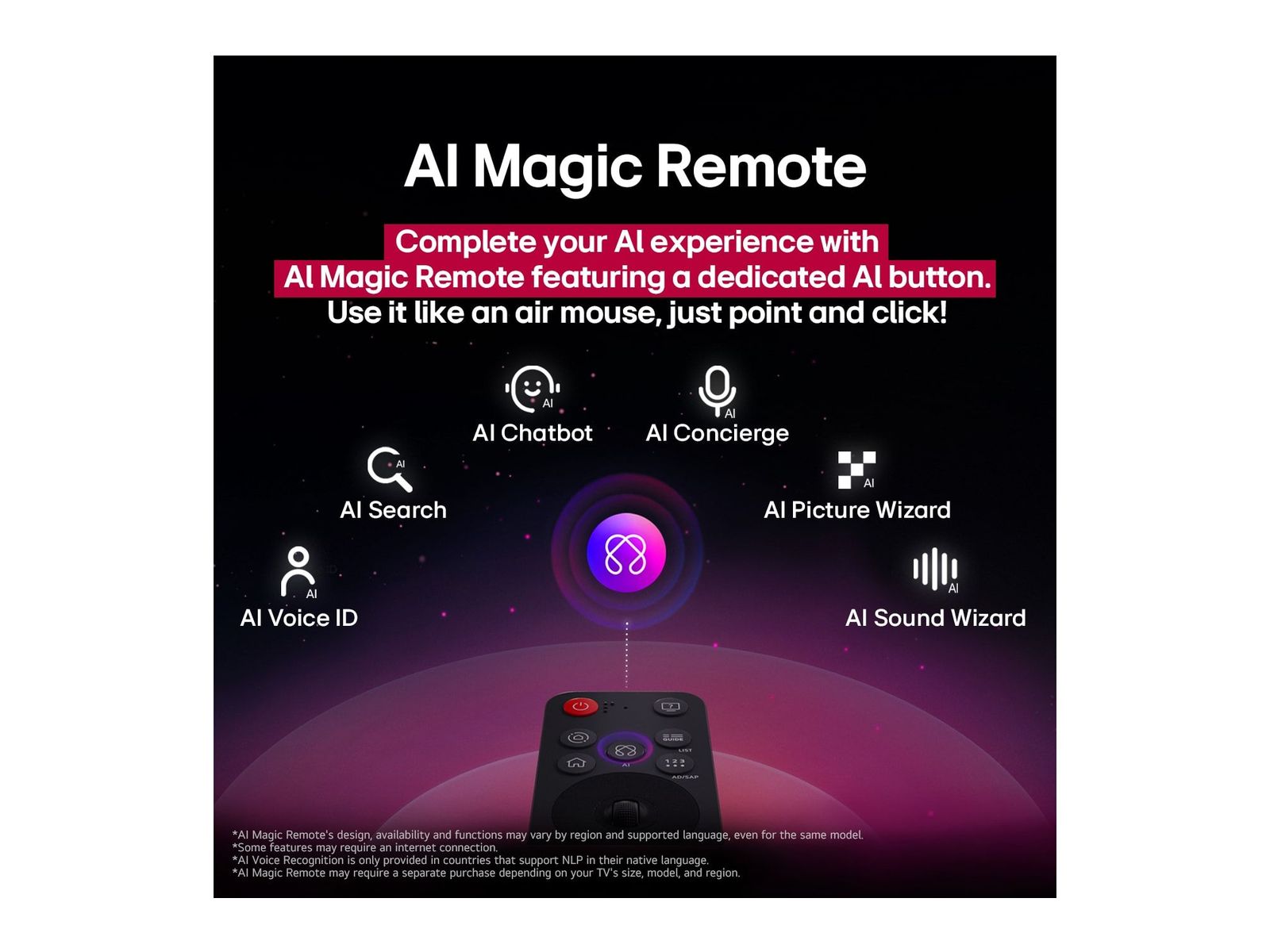 • Nieuwe AI-knop, stembediening, drag-and-drop-functies op de AI Magic Remote