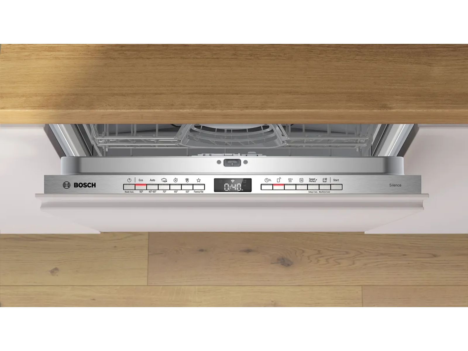Vaatwasser Serie 4 Vol. integ. - 60 x 81,5 - 87,5 cm Klasse C, Home Connect, 6 progr, 5 functies, 81,50 cm, warmtewisselaar, kuip Polinox, 9,0 l, 46 dB, besteklade, standaard korven, Rackmatic 3, 7 segments display direct select, InfoLight red C