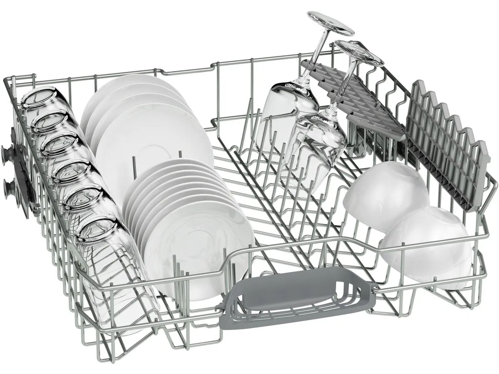 Bij het vullen van je vaatwasser heb je bovenaan soms wat meer ruimte nodig voor bijvoorbeeld glaswerk of hoge borden. Rackmatic komt hier goed van pas, omdat je de bovenkorf op drie verschillende niveaus kunt plaatsen. Het geeft je de flexibiliteit om hoge of grote items precies daar te plaatsen waar je wil.