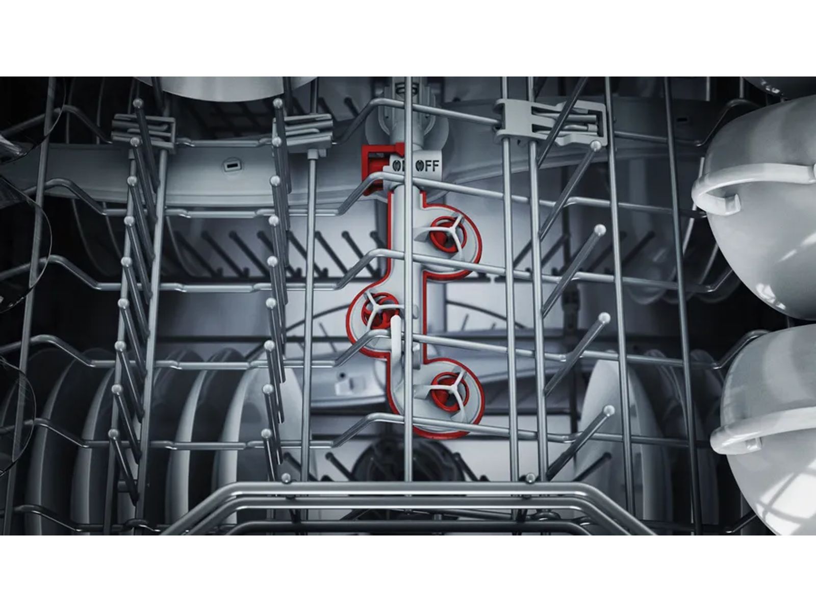 Opgedroogde etensresten zijn bij niemand geliefd: gelukkig maakt de Extra Clean Zone de vaat in de bovenkorf grondig schoon. Drie roterende watersproeiers zorgen voor extra schoonmaakkracht. En dat allemaal zonder extra detergent of een hogere temperatuur. Met één druk op de knop zorgt je vaatwasser voor een perfect resultaat.