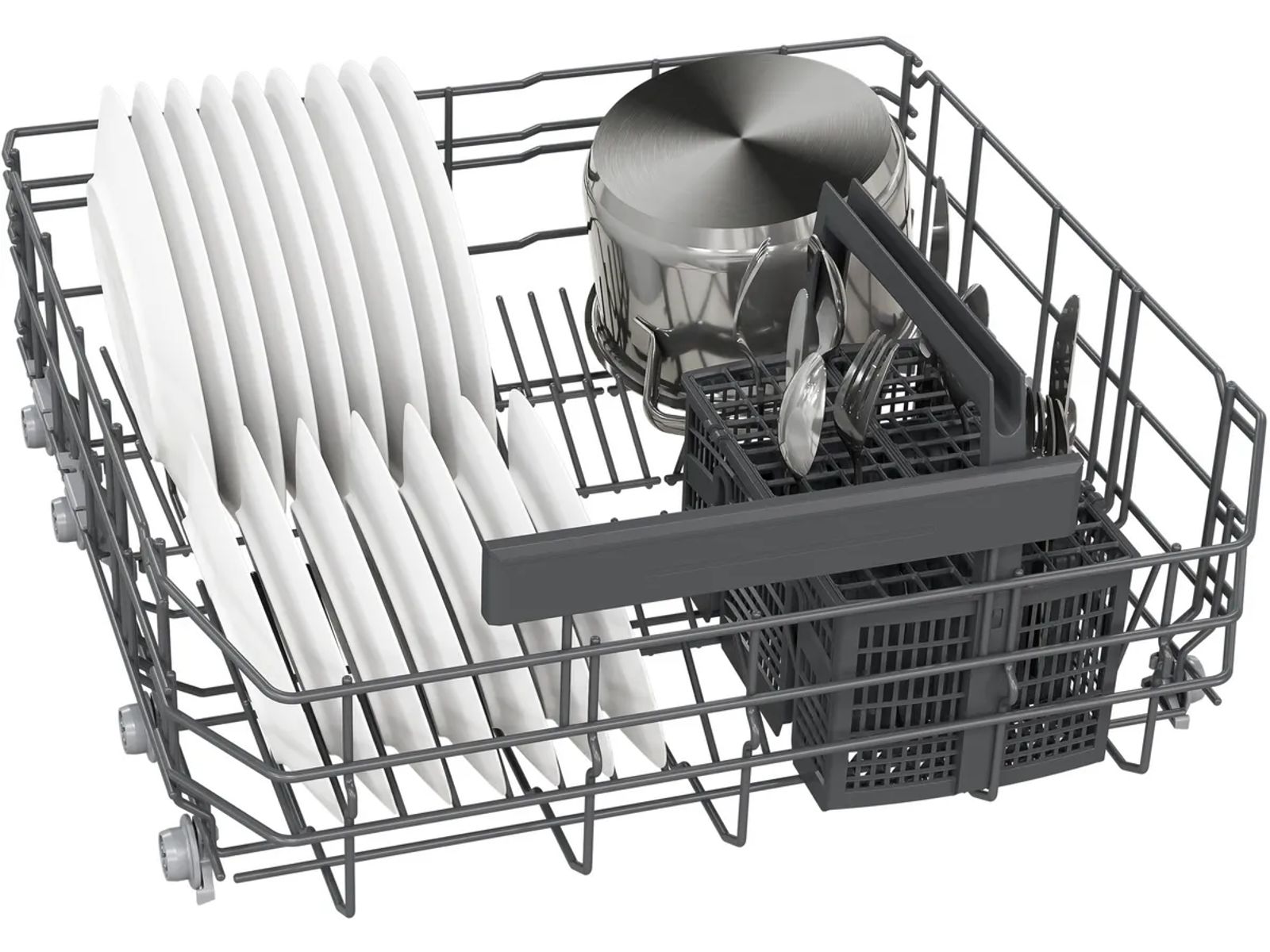 Volledig integreerbare XXL vaatwasmachine iQ300 met 6 programma's, 4 speciale functies waaronder Home Connect, capaciteit 13 standaard couverts, geluidsniveau 40 dB(A), machineCare, doseerAssistent, autoOpen Dry, aquaSensor, infoLight (blauw), digitale resttijdindicatie, emotionLight, elektronische voorprogrammering 1-24 uur, aquaStop en Home Connect.