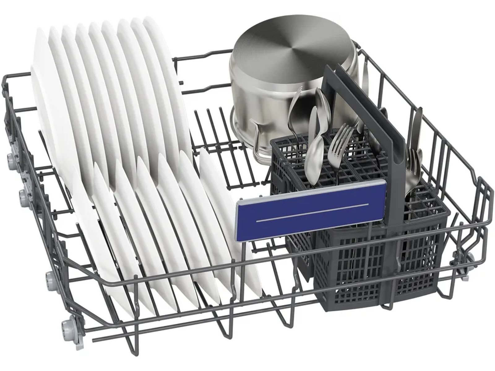 De bovenkorf is voorzien van drie splitsbare en inklapbare plateaus en twee rijen neerklapbare bordenpinnen. De onderkorf heeft vier rijen neerklapbare bordenpinnen. Dit biedt maximale flexibiliteit bij het inruimen. Bovendien kunt u de korven dankzij de handgrepen gemakkelijker uittrekken.